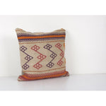 These beautiful 24" x 24" pillow covers were made from an authentic, vintage Turkish rug handwoven in the 1960s. Bright colors of wool adorn the front of the pillow and the cotton back has a hidden zipper enclosure. Makes a gorgeous addition to any couch, chair or bed.