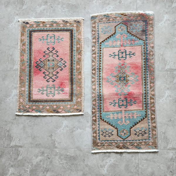 Muted Color Turkish Small Area Rugs - a Pair 1'8'' X 2'5'' - 1'8'' X 3'6''