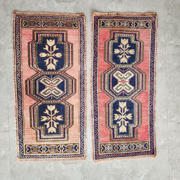 Traditional Handwoven Turkish Oushak Wool Bath Mats - a Pair 1'9'' X 3'6'' - 1'8'' X 3'7''