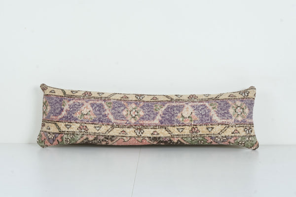 Elevate your home decor with these exquisite 10" x 34" pillow covers crafted from authentic vintage Turkish rugs, handwoven in the 1960s. The rich and vibrant woolen colors on the front of each pillow are a testament to the artistry of Turkish craftsmanship. These cushions add a touch of elegance and nostalgia to any couch, chair, or bed.