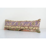 These beautiful 12" x 40" pillow covers were made from an authentic, vintage Turkish rug handwoven in the 1960s. Bright colors of wool adorn the front of the pillow and the cotton back has a hidden zipper enclosure. Makes a gorgeous addition to any couch, chair or bed.