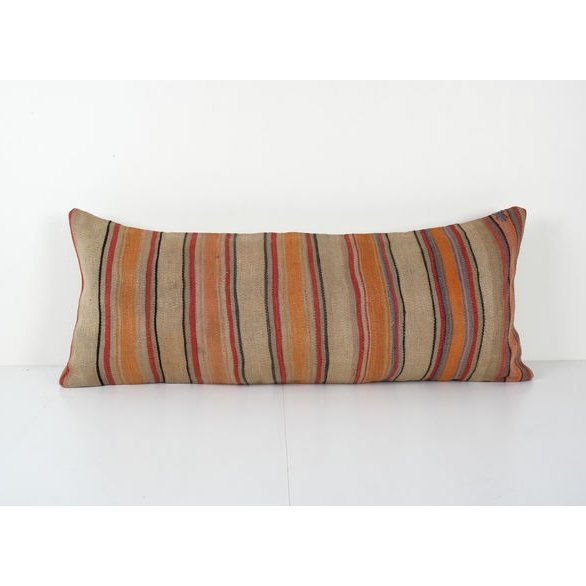 These beautiful 16" x 38" pillow covers were made from an authentic, vintage Turkish rug handwoven in the 1960s. Bright colors of wool adorn the front of the pillow and the cotton back has a hidden zipper enclosure. Makes a gorgeous addition to any couch, chair or bed.