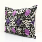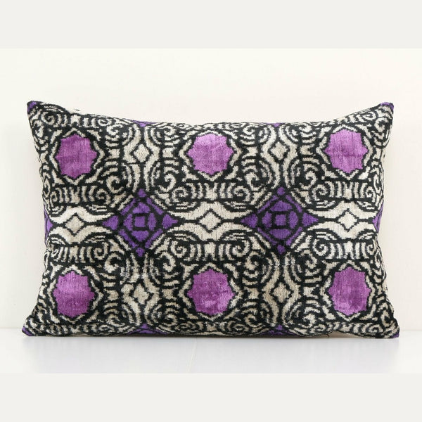 Geometric Design Blue Ikat Velvet Pillow - Pink Ethnic Silk Cushion Cover - Unusual Lumbar Cushion Cover - Designer Pillow
