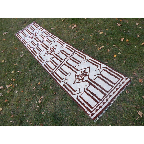 - Vintage Handmade Wool Kilim Runner Rug From Turkey