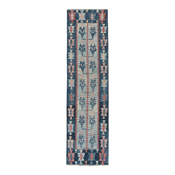 Vintage Wool Pink and Blue Turkish Kilim Rug Runner 2'6'' x 7'4''