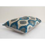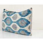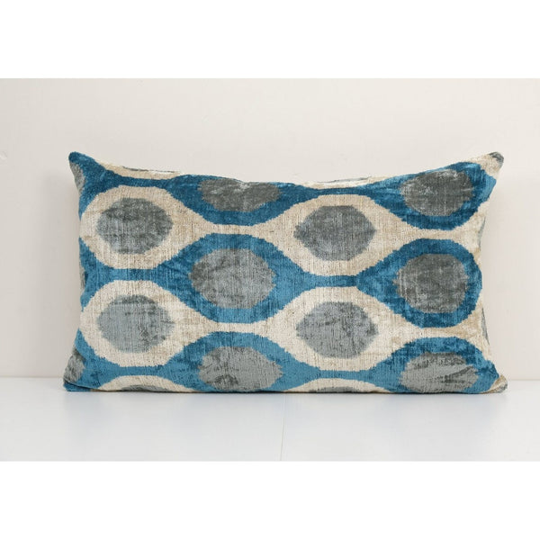 Ikat Blue Lumbar Pillow - Silk Ikat Velvet Pillow - Lumbar Ethnic Cushion Cover - Designer Pillow Cover