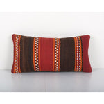These beautiful 14" x 24" pillow covers were made from an authentic, vintage Turkish rug handwoven in the 1960s. Bright colors of wool adorn the front of the pillow and the cotton back has a hidden zipper enclosure. Makes a gorgeous addition to any couch, chair or bed.