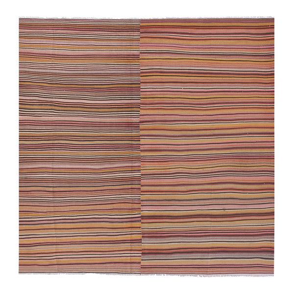 1960s Vintage Oversize Striped Turkish Kilim Rug 9'4'' X 9'10''