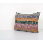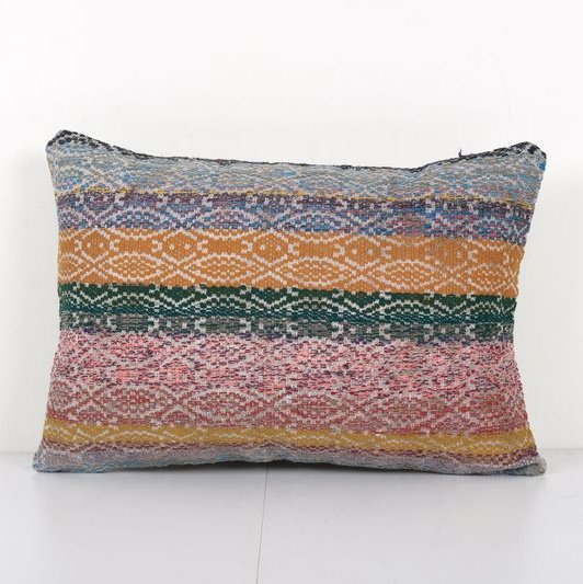 These beautiful 14" x 20" pillow covers were made from an authentic, vintage Turkish rug handwoven in the 1960s. Bright colors of wool adorn the front of the pillow and the cotton back has a hidden zipper enclosure. Makes a gorgeous addition to any couch, chair or bed.