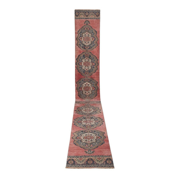 Vintage Geometric Design Turkish Anatolian Runner Rug - Stair Carpet 2'10'' x 22'8''