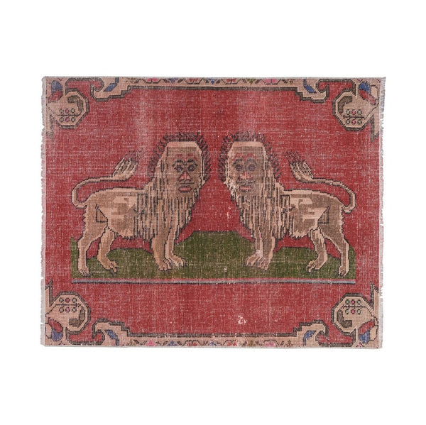 Vintage Faded Turkish Double Lion Rug 3'4'' X 4'2''