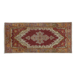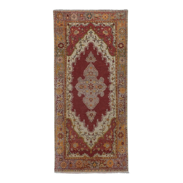 Vintage Red and Pink Turkish Oushak Rug - Kitchen Rug 3'5" X 7'4"
