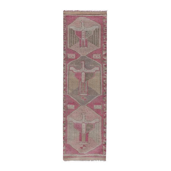 Vintage Bird Pattern Turkish Runner Rug 3'5'' X 11'6''