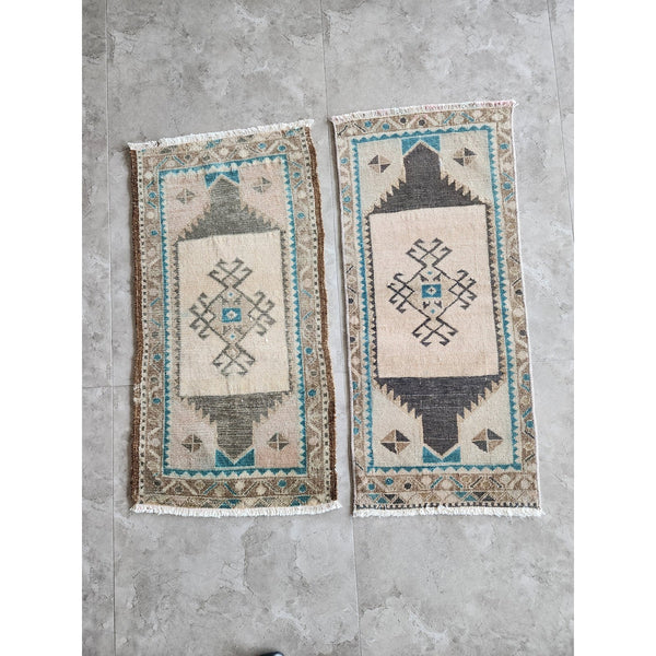 Traditional Handwoven Oushak Wool Yastik Bath Mats - a Pair