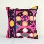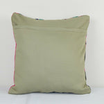 These beautiful 18" x 18" pillow covers were made from an authentic, vintage Turkish rug handwoven in the 1960s. Bright colors of wool adorn the front of the pillow and the cotton back has a hidden zipper enclosure. Makes a gorgeous addition to any couch, chair or bed.
