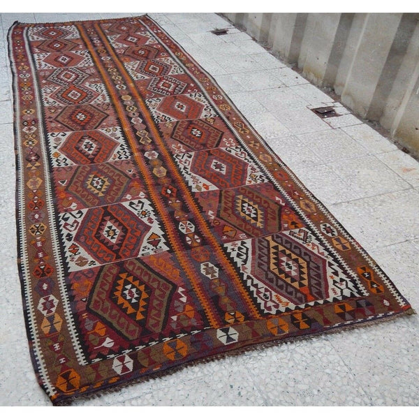 VINTAGE HANDMADE WOOL KILIM RUNNER FROM TURKEY