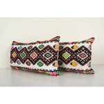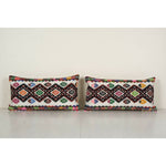These beautiful 12" x 24" pillow covers were made from an authentic, vintage Turkish rug handwoven in the 1960s. Bright colors of wool adorn the front of the pillow and the cotton back has a hidden zipper enclosure. Makes a gorgeous addition to any couch, chair or bed.