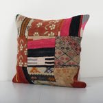 These beautiful 18" x 19" pillow covers were made from an authentic, vintage Turkish rug handwoven in the 1960s. Bright colors of wool adorn the front of the pillow and the cotton back has a hidden zipper enclosure. Makes a gorgeous addition to any couch, chair or bed.