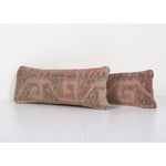 These beautiful 9" x 22" pillow covers were made from an authentic, vintage Turkish rug handwoven in the 1960s. Bright colors of wool adorn the front of the pillow and the cotton back has a hidden zipper enclosure. Makes a gorgeous addition to any couch, chair or bed.
