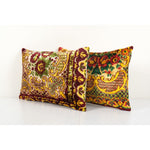 These beautiful 16" x 24" pillow covers were made from an authentic, vintage velvet fabric handwoven in the 1960s. Bright colors of wool adorn the front of the pillow and the cotton back has a hidden zipper enclosure. Makes a gorgeous addition to any couch, chair or bed.