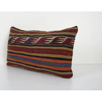 These beautiful 12" x 22" pillow covers were made from an authentic, vintage Turkish rug handwoven in the 1960s. Bright colors of wool adorn the front of the pillow and the cotton back has a hidden zipper enclosure. Makes a gorgeous addition to any couch, chair or bed.
