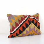 These beautiful 16" x 24" pillow covers were made from an authentic, vintage Turkish rug handwoven in the 1960s. Bright colors of wool adorn the front of the pillow and the cotton back has a hidden zipper enclosure. Makes a gorgeous addition to any couch, chair or bed.