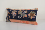 These beautiful 11" x 24" pillow covers were made from an authentic, vintage Turkish rug handwoven in the 1960s. Bright colors of wool adorn the front of the pillow and the cotton back has a hidden zipper enclosure. Makes a gorgeous addition to any couch, chair or bed.