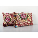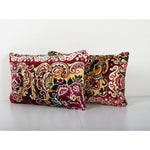 These beautiful 12" x 18" pillow covers were made from an authentic, vintage velvet fabric handwoven in the 1960s. Bright colors of wool adorn the front of the pillow and the cotton back has a hidden zipper enclosure. Makes a gorgeous addition to any couch, chair or bed.