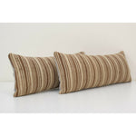 These beautiful 10" x 26" pillow covers were made from an authentic, vintage Turkish rug handwoven in the 1960s. Bright colors of wool adorn the front of the pillow and the cotton back has a hidden zipper enclosure. Makes a gorgeous addition to any couch, chair or bed.