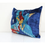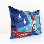 16" x 24" Turkish Human Pictorial Ikat Velvet Pillow, Silk Lumbar Cushion Cover