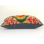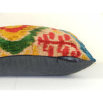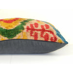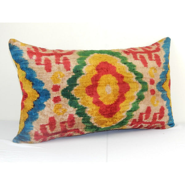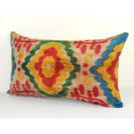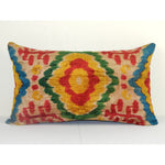 16" x 26" Yellow Velvet İkat Pillow,Handmade Patchwork Decorative