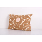 Tan Suzani Lumbar Cushion Cover, Tribal House Decor- Embroidery Handmade Embroidery Bukhara Pillows - Vintage Uzbek Pillow 16'' x 24''