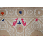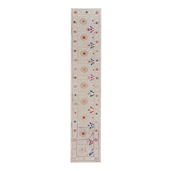 1960s Bird Motfis Pink Suzani Table Runner Vintage C.Asian Textile 2.1' x 11.4'
