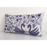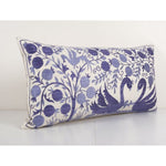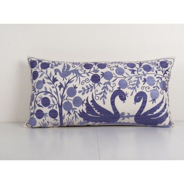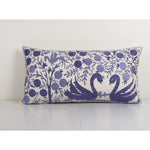 Blue Suzani Bedding Pillow Made from a Vintage Uzbek Suzani, Animal Duck Motif Uzbek Pillow cover 18'' x 34''