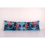 Fish Ikat Velvet Bedding Pillow, Silk Long Animal Lumbar Cushion Cover, Uzbek Velvet Cushion Cover 15'' x 49''