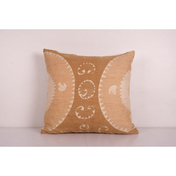Brown Suzani Pillow Cases Fashioned from a Vintage Suzani, Square Vintage Suzani Pillow with Soft Colors 24'' x 26''