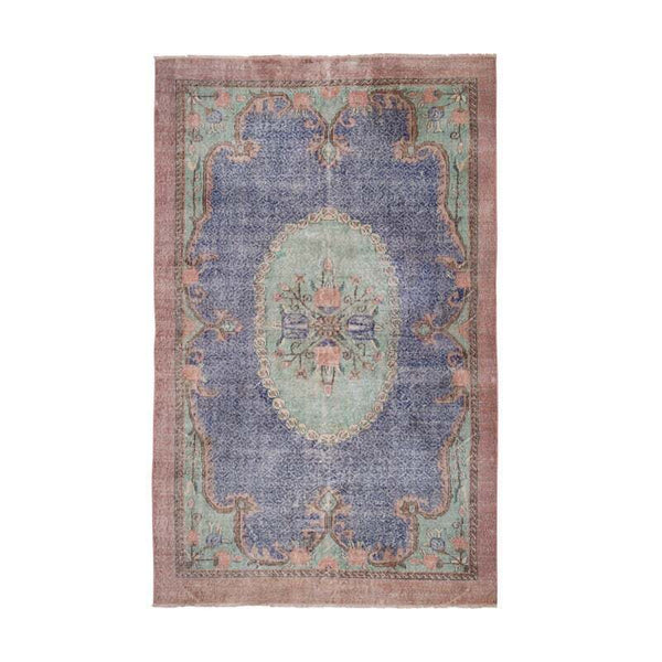 Distressed Blue Turkish Oushak Rug - Room Size Carpet 6'4" X 9' 12"