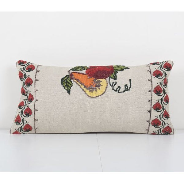 These beautiful 11" x 22" pillow covers were made from an authentic, vintage Turkish rug handwoven in the 1960s. Bright colors of wool adorn the front of the pillow and the cotton back has a hidden zipper enclosure. Makes a gorgeous addition to any couch, chair or bed.