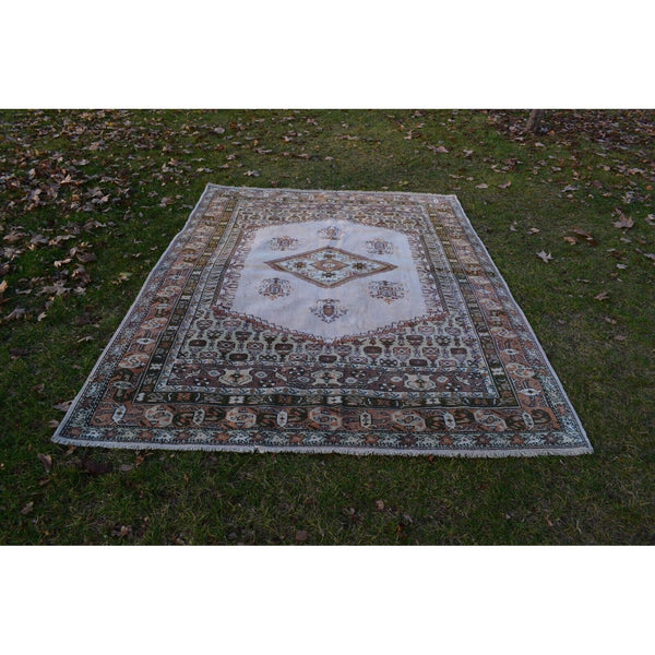 Farmhouse Kitchen Vintage Mid Century Turkish Oushak Rug 6.7 X 9.3 Ft.