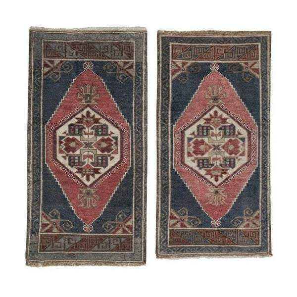 Hand Made Mini Rug Front of Kitchen Sink Rug Bath Mat Distressed Rug - A Pair