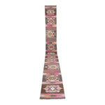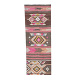 Hand-Woven Pink, Fuchsia, Orange, Yellow and Brown Color Turkish Kilim Runner