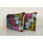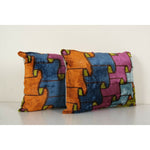 Ikat Velvet Pillow, Set of Two Colorful Silk Puzzle Lumbar Cushion Cover