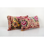 Muted Color Antique Carpet Rug Pillow, Faded Unique Long Soft Color Lumbar Cover