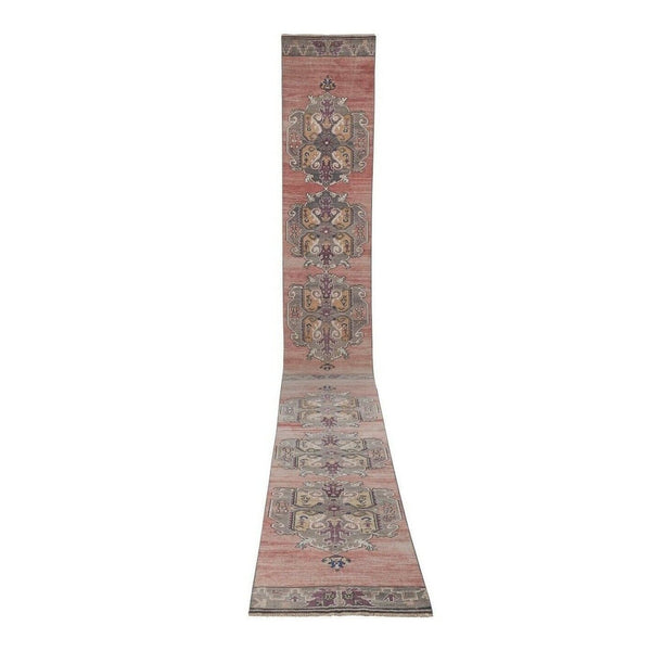 Neoclassical Style Vintage Turkish Oushak Runner, Extra-Long Hallway Carpet