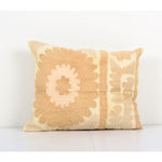 Rectangular Decorative Cotton Pastel Suzani Lumbar Pillow Cover, Muted Beige Ethnic Cushion Cover 14'' x 17''