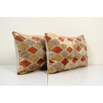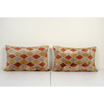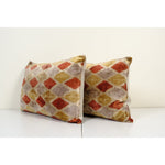 Set of Two Green Silk Ikat Velvet Pillow Cover, Pair Checkered Ikat Lumbar