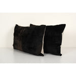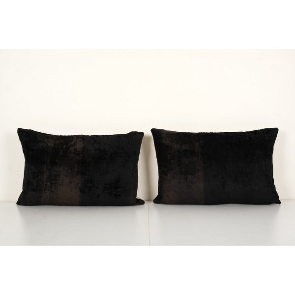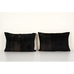 Set of Two Ikat Black Pillow Cover - Pair Silk Velvet Lumbar Pillow