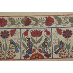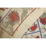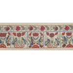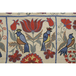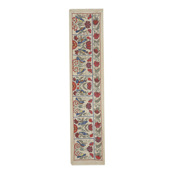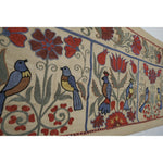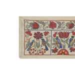 Silk Suzani Table Runner With Animal Design, Suzani Textile, Beige Pictorial Suzani Wall Hanging Decor 1'10'' x 7'1''