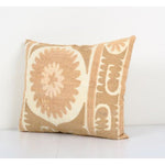 Square Exquisite White Washed Neutral Beige Terrific Art Accent Pillow Cover, Muted Suzani Cushion Cover 17''x 20''