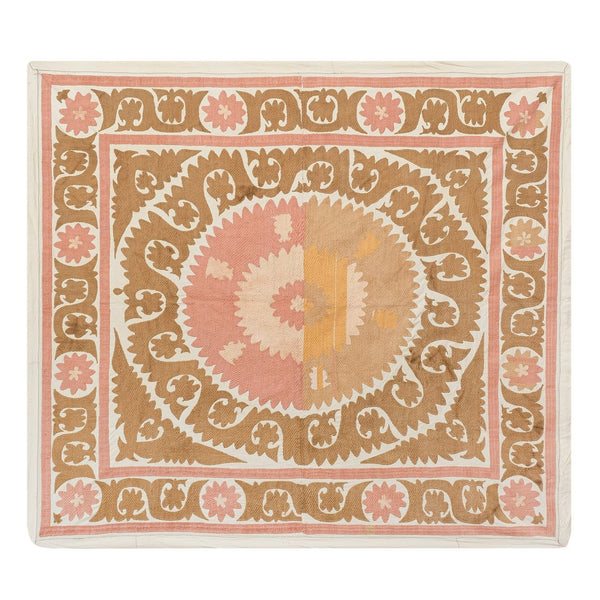 Suzani Faded Tapestry - Uzbek Table Cloth - Tribal Embroidery Wall Decor, Boho Bedspread, Ethnic Fabric, Suzani Throw 4'9'' x 5'3''